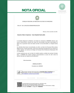 O Conselho Regional de Medicina do Estado do Amazonas (CREMAM) divulga nesta quarta-feira, 26, nota oficial sobre o fato envolvendo médicos e as circunstâncias que levaram a morte do menor B.X.F, 6 anos.